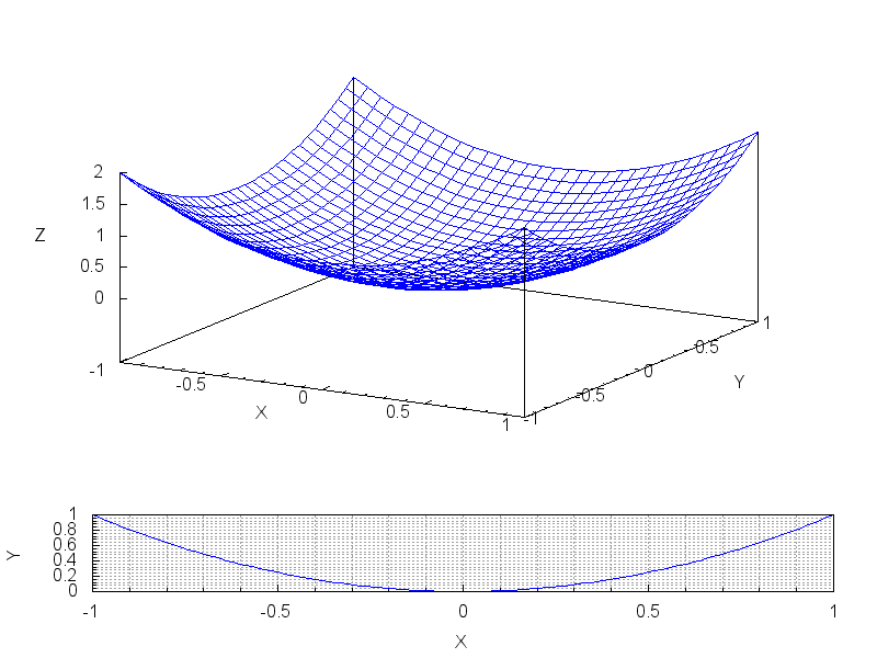 (%i1) draw(gr3d(explicit(x^2+y^2,x,-1,1,y,-1,1))); (%o1) [gr3d(explicit)] (%i2) draw3d(explicit(x^2+y^2,x,-1,1,y,-1,1)); (%o2) [gr3d(explicit)]